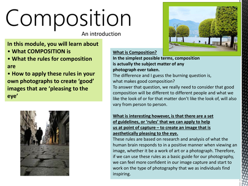 AQA GCSE Photography Resources / Starters / Activities | Teaching Resources from d1uvxqwmcz8fl1.cloudfront.net Bad composition, on the other hand, is a deal breaker; Describing a painting landscape picture description. English vocabulary with images and flashcards, this lesson helpful for student and learner to improve their vocabulary in english. You can do the exercises online or download the worksheet as pdf. The term composition means putting together. A picture may have as its component parts a man, a horse, a tree, a fence, a road and a mountain; Questions 2(a), 2(b), 3(a) and 3(b). Composition composition nn giving giving form form by by or commercial applications.